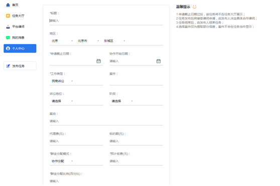 發布新的協作任務,發布成功后其他律師可見。