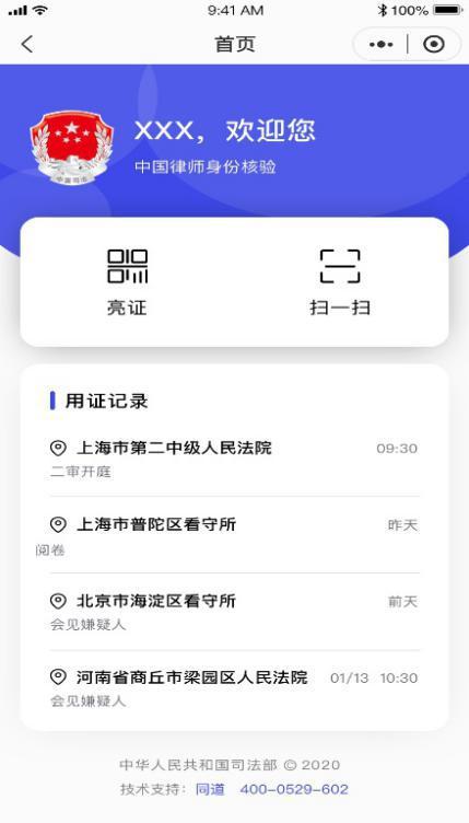 9月9日,司法部發(fā)布的“中國(guó)律師身份核驗(yàn)平臺(tái)”正式上線試運(yùn)行,在最高人民法院的支持與配合下,提倡律師更方便參與訴訟活動(dòng)而設(shè)立。使用規(guī)則也非常簡(jiǎn)單,律師只需要在微信小程序中搜索“中國(guó)律師身份核驗(yàn)”,通過(guò)人臉識(shí)別進(jìn)行驗(yàn)證審核身份后,即可使用“亮證”和“掃一掃”功能。